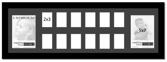 School Year Collage Frame - K-12 Photo Frame, Holds 12-2x3 and 2-5x7 Photos in 10x32 Frame