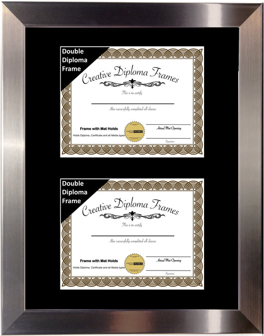 6x8 thru 16x20.5 Double Diploma Vertical Carnegie Stainless Steel Finish Frame with Mat