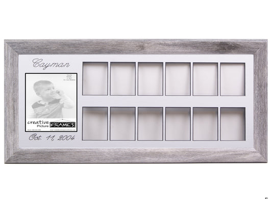 Personalized 12 Month Collage Frame - Holds 1-4x6 and 12-2x3 Photos - 10x20 Frame