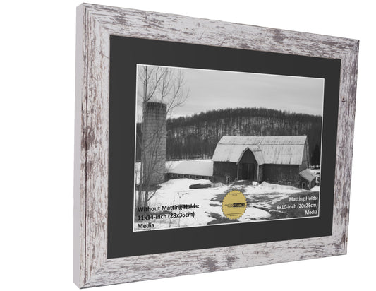 8x10 Opening White Mat in our 11x14-inch Barn Wood Picture Frame Includes Glass, Easel with Installed Wall Hanger