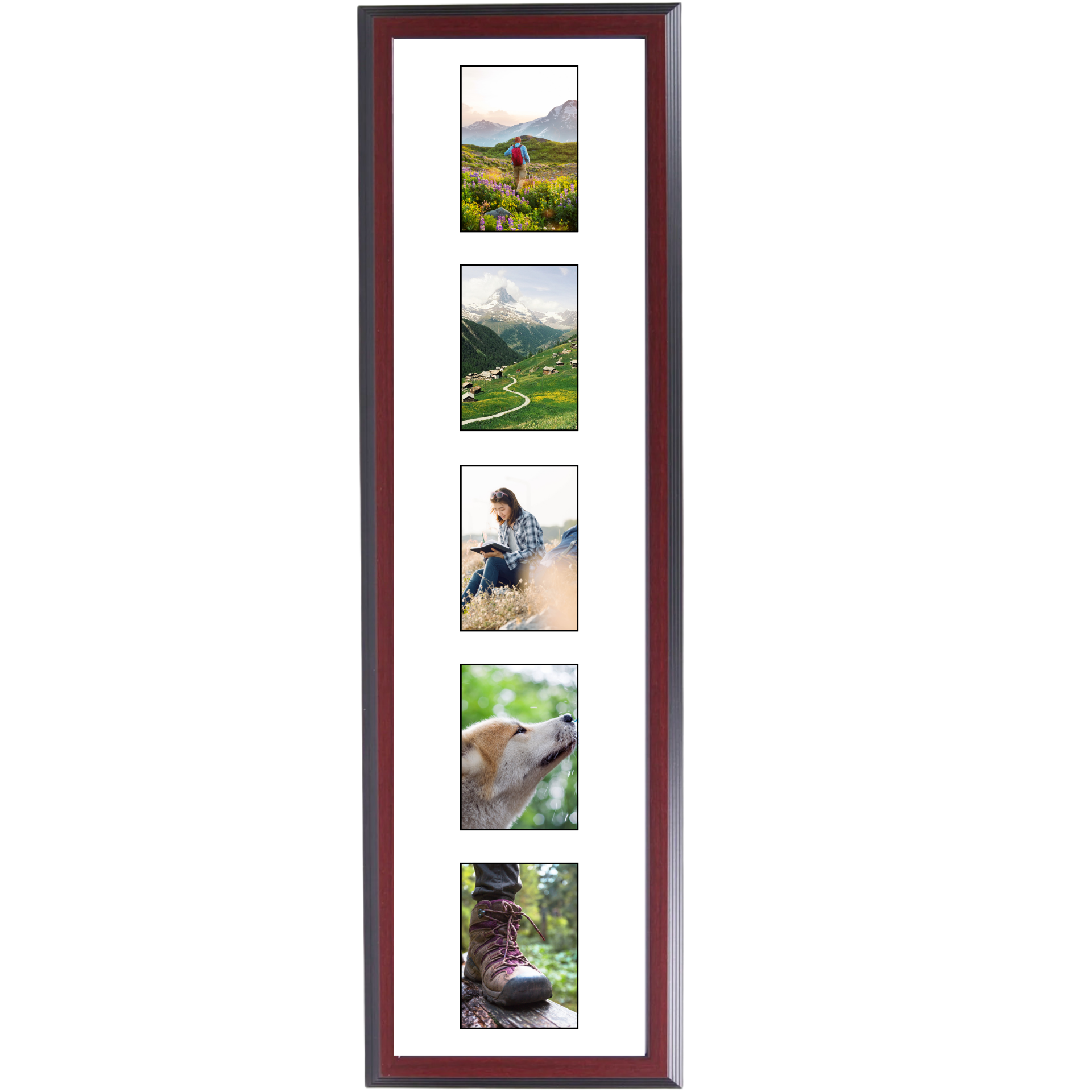 From family to travel photos, the vertical collage frame is a great match for displaying numerous images in one place. The mat is designed to easily mount 4x6-inch photos with minimal loss around the edges.