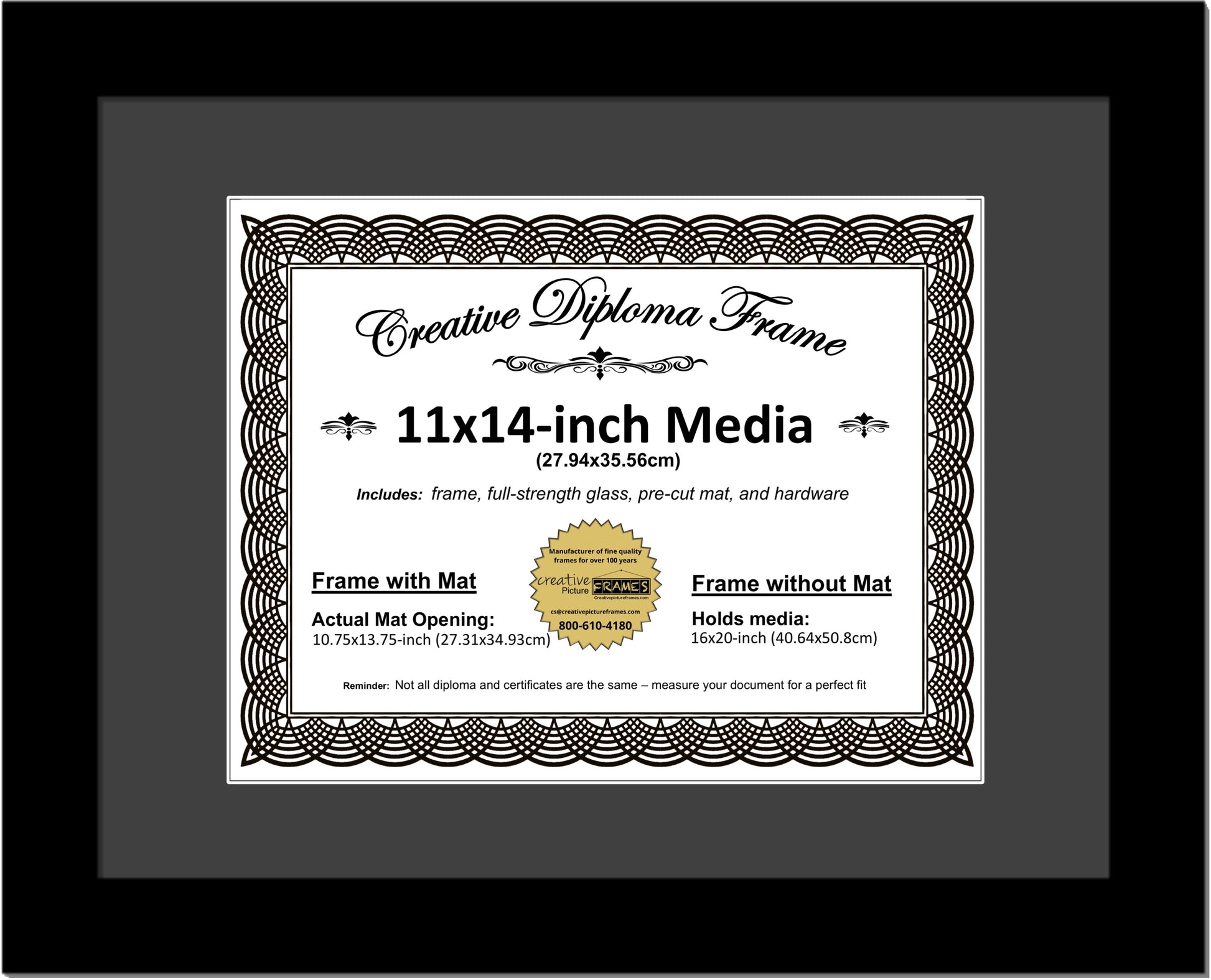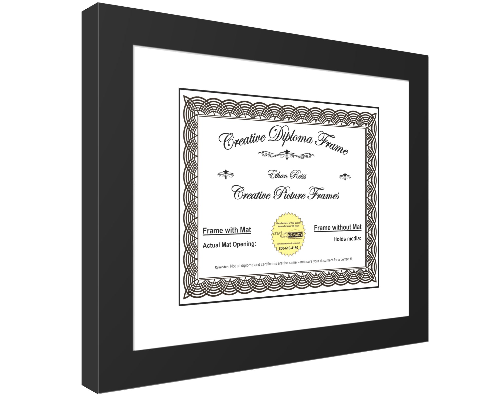6x8 thru 16.5x20.5 Manhattan Black Diploma Frame with Mat