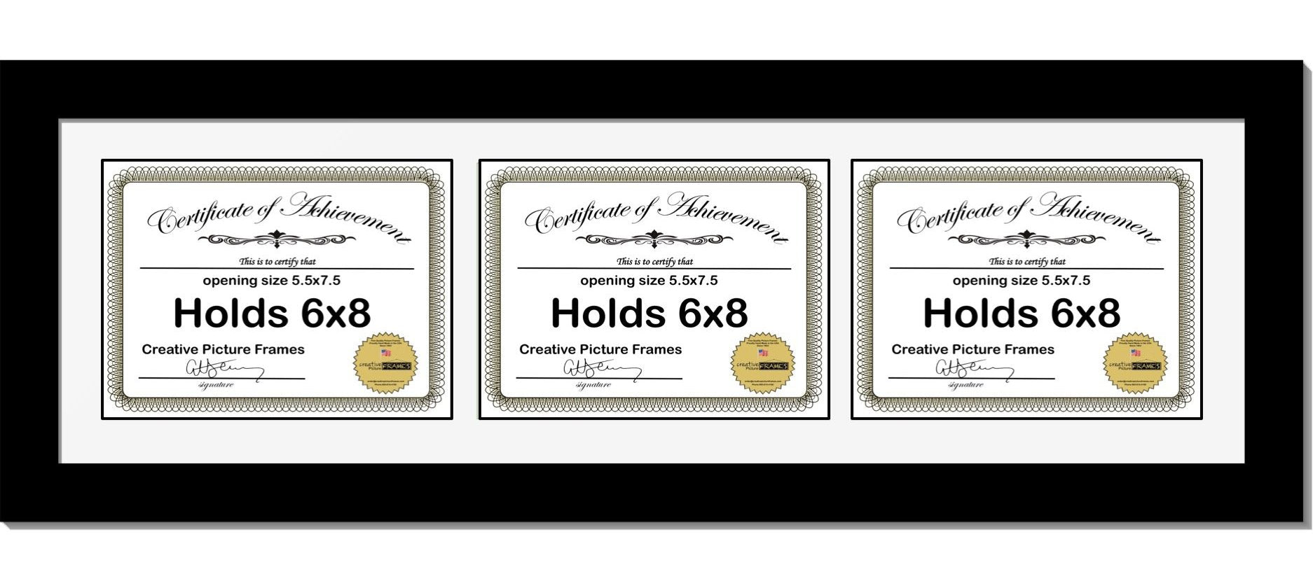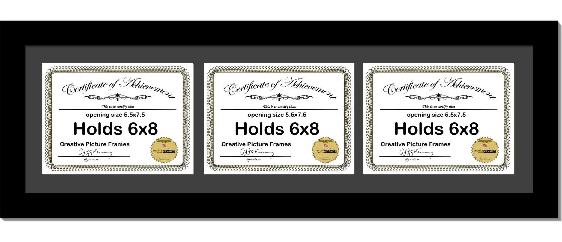 6x8 8.5x11 Manhattan Black Triple 3 Document Horizontal Frame with Mat